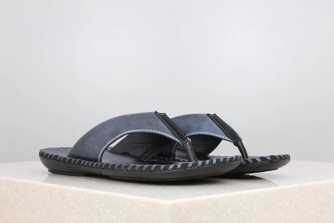 What is comfortable and light? These Toe Thongs! They are casual slippers with flat soles and are held by a strap in the centre. Made from leather, these Toe Thongs offer great comfort and are designed to look likewise. They come in Blue. A must-have in your collection.