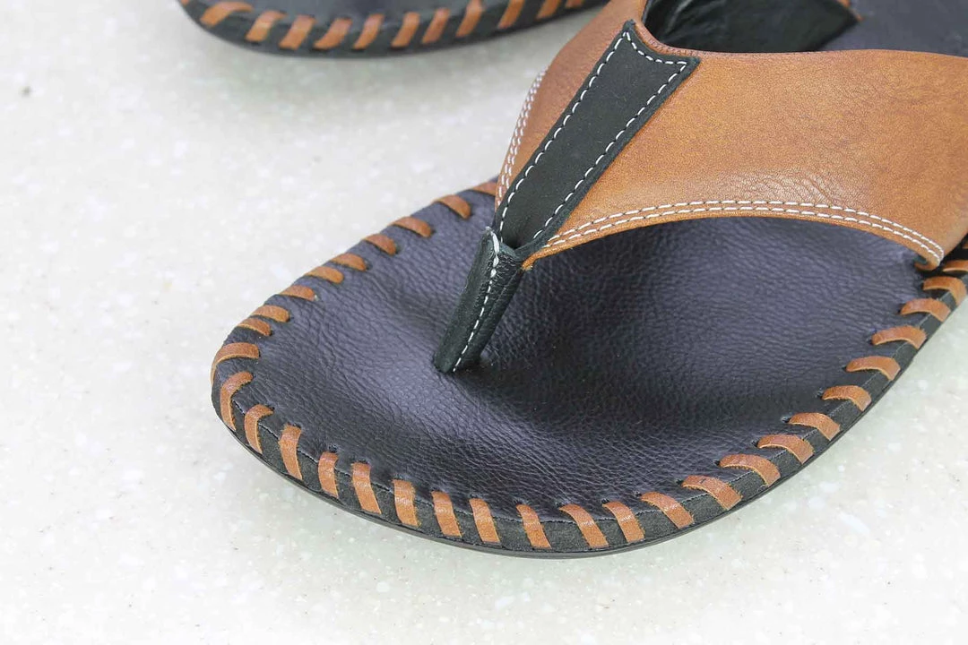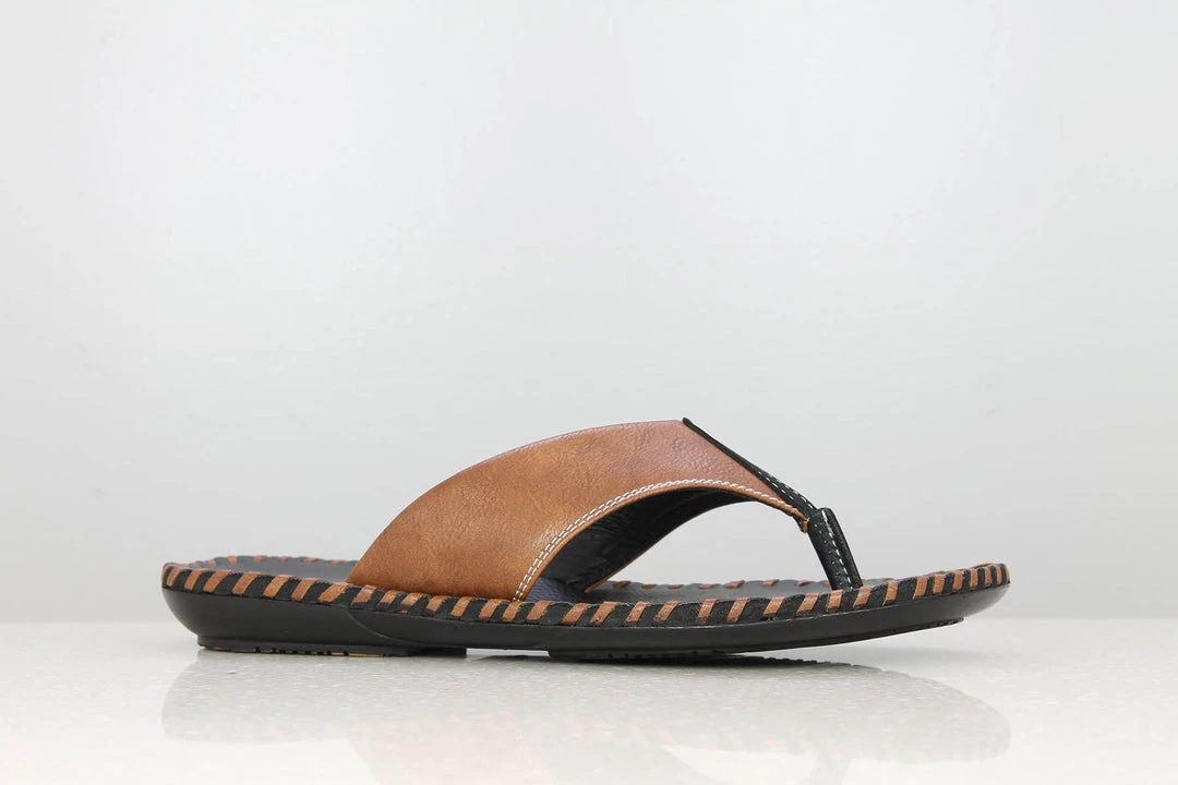 What is comfortable and light? These Toe Thongs! They are casual slippers with flat soles and are held by a strap in the centre. Made from leather, these Toe Thongs offer great comfort and are designed to look likewise. They come in TAN. A must-have in your collection.